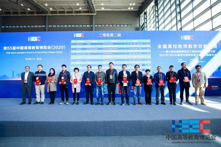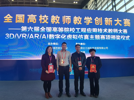 2020年11月10日,由中国高等教育学会主办的全国高校教师教学创新大赛——第六届全国高等院校工程应用技术教师大赛3D/VR/AR/AI数字化虚拟仿真主题赛项全国总决赛颁奖典礼在长沙第55届中国高等教育博览会上顺利举办。js33333金沙线路检测三个团队喜获全国总决赛一等奖1项,二等奖2项,分别是T1-3D打印与3D设计赛项全国总决赛一等奖(李海燕、康永平、陈卫华、任丽娜、吴卓)、二等奖(魏兴春、宋波),T3-面向实训实践的VR创新应用赛项全国总决赛二等奖(郑敏、李海燕、任丽娜、吴卓、周兰)。