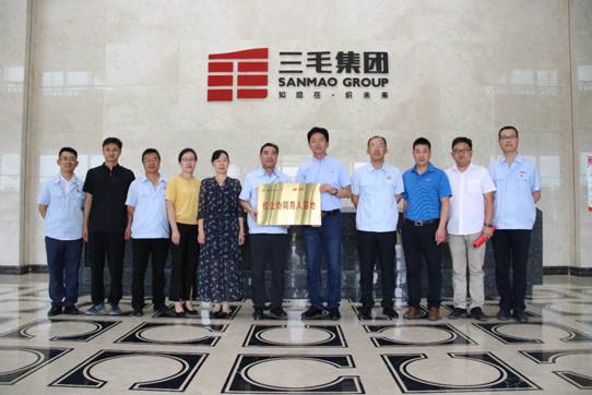 2020年7月27日,公司党委书记王正民、副经理彭斌一行6人在兰州三毛实业有限公司参加了“校企协同育人基地”揭牌仪式,仪式由三毛实业有限公司党委副书记、董事、总经理谭小毅主持,三毛集团党委副书记、副董事长、总经理,三毛实业公司党委副书记、董事李彦学,三毛实业公司副总经理周希琪,三毛实业公司总工程师李文全等企业领导,以及企业代表30余人参加揭牌仪式。