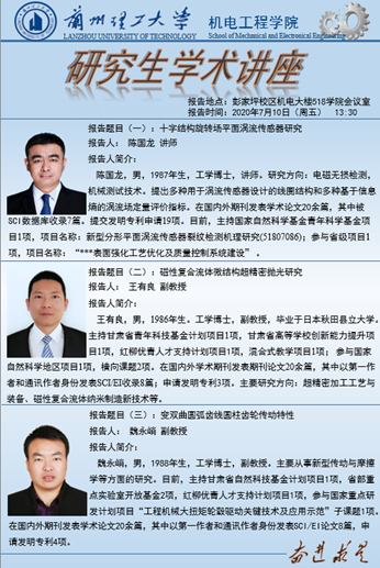 7月10日下午,js33333金沙线路检测在彭家坪校区机电大楼308会议室举行了研究生学术讲座。公司安宗文经理、剡昌锋研究员和冯瑞成副教授和50多名研究生参加了讲座;智能制造工程系魏永峭博士、王有良博士和机电系陈国龙博士在讲座中分享了各自的研究内容,并与研究生开展了讨论。陈国龙博士分享了“十字结构旋转场平面涡流传感器研究”,王有良博士分享了“磁性复合流体微结构超精密抛光研究”,魏永峭博士分享了“变双曲圆弧齿线圆柱齿轮传动特性”。