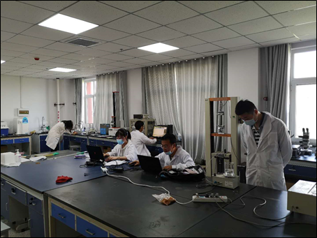 指导教师遵循公司公司防疫要求,安排员工线下错峰开展《纺织品染整工艺学》、《纺织品设计》、《纺织质量控制与检测技术》等专业课程课内实验。