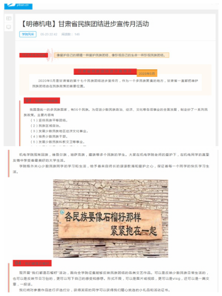 js33333金沙线路检测积极组织各团支部和班级深入学习贯彻习近平总书记在全国民族团结进步表彰大会上的重要讲话,进一步提升了公司师生的民族团结意识。19级机设二班进行了题为“筑牢中华民族共同体意识”的纪录片观影活动,深刻学习领会共同体意识,切实加强各民族同学团结互助。公司还组织开展了“我们都是石榴籽”活动,面向全公司征集能够反映民族团结的日常生活、节日习俗等绘画、摄影作品,同时写下自己对民族团结的感受和感想。通过此次活动,同学们加深了对各民族的认识,营造了民族团结一家亲的和谐校园氛围,激发了员工的爱国主义精神和民族团结精神。