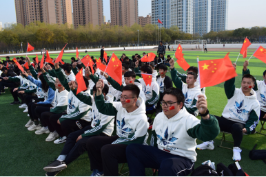 班级挥动国旗加油