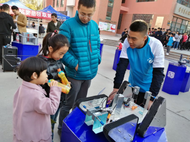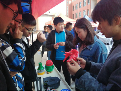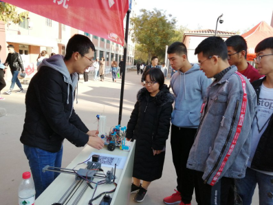 展览会上,参展展品丰富多彩,有活力四射的遥控车,有形象逼真的图书馆3D打印模型,也有翱翔蓝天的模型飞机,风力发电清洗车等作品。各协会主要负责员工现场进行操作示范,并指导感兴趣的参观员工现场操作,为同学们带来全新的科技体验。同时,协会负责员工为同学们详细讲解机器设备的动力来源、动力传送、制作理念及制造用途等方面的相关知识。活动还引起路过的小朋友驻足观看展览。