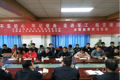 张君书记带领全国样本支部的党员代表和研究生党员代表与万里厂机电研究公司党支部开展了题为“不忘初心、牢记使命、走进军工、航空报国”的共建活动,兰州万里航空股份有限公司董事长、人力资源部部长、机电研究院经理、其他部门领导及理工大员工参加了本次共建活动。