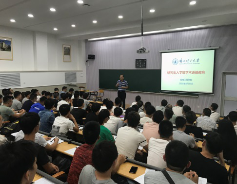 31日晚公司在教学楼1北404举行了2018届全体研究生新生大会,靳经理出席大会并做了题为“科学道德与学风建设”讲话。会上靳经理给新生详细讲解了本届的招生情况、学科历程、公司的机构设置和学术道德规范等事项,在讲到学术道德规范时,着重叮嘱新生要认真踏实地做学术、搞研究,少一些浮躁,多一些沉淀。全体新生认真聆听讲话并致以热烈的掌声。