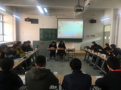 12月21日上午, js33333金沙线路检测在西区2号楼301教室召开了中干联系班级座谈会,学报编辑部主任李有堂老师,及班主任王有良老师,辅导员老师,2017级机设基地班全体同学参加了座谈会。