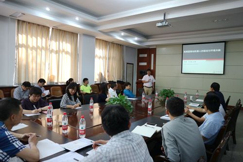 应js33333金沙线路检测邀请,同济大学徐鉴教授于6月13日来js33333金沙线路检测做学术报告及团队建设交流。徐鉴教授围绕柔性移动机器人系统建模与仿真、试验领域系统介绍了蚯蚓型移动系统设计的关键问题--驱动形式和与环境共融的背景问题提出与凝练、内部振动驱动和环境摩擦条件下的移动系统的动力学建模、分析与实验蚯蚓型机器人的运动学和动力学模型,提出了任意单元蚯蚓型机器人的一般化步态设计算法;基于仿生学的思想,模仿蚯蚓的肌肉结构和肌肉功能,设计和制作了一个八单元蚯蚓型振动驱动移动机器人,并从实验上研究了步态对多单元蚯蚓型机器人运动性能的影响。徐鉴教授与参会青年教师就科学研究、人才培养与队伍建设进行了互动交流。