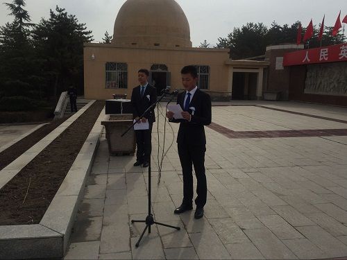 烈士墓前,员工代表向烈士敬献花圈,全体默哀一分钟,悼念革命先烈,向烈士纪念碑三鞠躬。员工代表号召大家不忘革命先烈,发扬不畏艰难的爱国主义精神,让“大手拉小手”,珍惜来之不易的幸福生活,努力学习,做新时代的有为青年。大家宣誓:“以我壮志激励,创造崭新未来;以我火红青春,建设锦绣中华。”