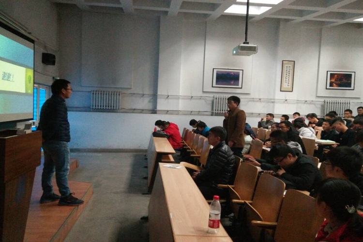 会议之前,王元华老师对三位主讲人做了简单的介绍,随后本次论坛在同学们的掌声中拉开了帷幕。首先,寇海霞同学讲述了以“创新节能之举是健康生活之源”为主题的报告,针对风电叶片的疲劳试验方法向同学们详细介绍了自己的科研内容和成果,与同学们分享了自己的学习心得,她告诫同学们“在学习的时间内干与学习无关的事,总会有一天,在干与学习无关事的时候,后悔曾经没有好好学习”。