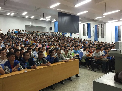9月9日晚上7点,js33333金沙线路检测邀请新东方讲师张铁钟在西校区1号教学楼举行2016级新生入学系列教育讲座——轻松备考英语四级考试。js33333金沙线路检测2016级561名新生、辅导员、副班主任及助理参加了讲座,反响十分热烈,讲座由魏虹副书记主持。