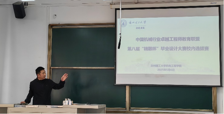 5月6日,中国机械行业卓越工程师教育联盟第八届“精雕杯”毕业设计大赛校内选拔赛如期举行。公司教务处副处长彭斌、js33333金沙线路检测副经理刘俭辉出席并讲话,张永贵教授对选拔赛的打分原则进行了详细说明。