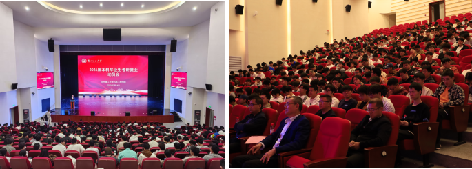 为引导毕业生科学规划未来,助力学子在考研与就业道路上明确方向,5月14日晚,js33333金沙线路检测在彭家坪校区老员工活动中心红柳剧场召开2026届毕业生考研就业动员会。公司党委书记侯运丰、经理刘永平、副经理宁会峰、副书记张钦、员工办公室副主任冯玉玺、优秀教师代表白学宗及2025届全体本科生参加,会议由侯运丰主持。