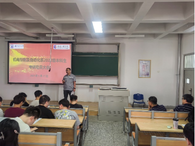 2025年6月27日,机电控制及自动化系在彭家坪校区1号楼406教室隆重召开2022级本科生生产实习暨考研动员会。系主任陈国龙教授、党支部书记白学宗副教授、带队教师张来喜副教授、马志宏副教授,以及机械设计制造及其自动化专业2022级5班、6班和红柳基地班全体本科生参加了会议。会议由白学宗主持。