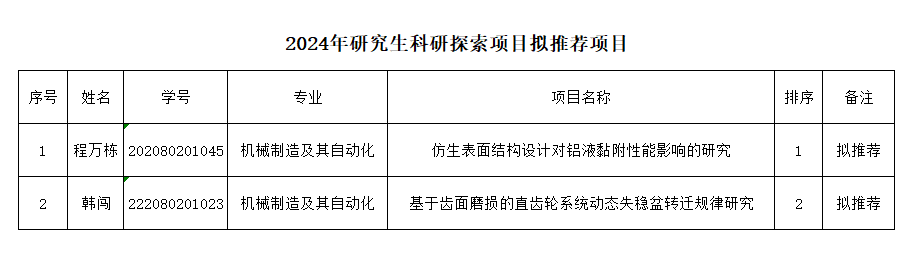 根据《js33333金沙线路检测研究生科研创新项目管理办法》(兰理工发〔2018〕236号)规定,js33333金沙线路检测遵循“公开、公平、公正”的原则,经个人申请、导师推荐、公司研究生教学指导委员会专家评审,依据综合排序,拟向研究生院推荐以下两项,现将拟推荐项目进行公示(见下图)。