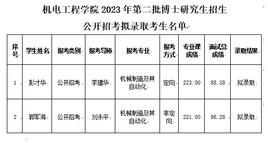 2023年第二批博士研究生招生公开招考拟录取名单公示