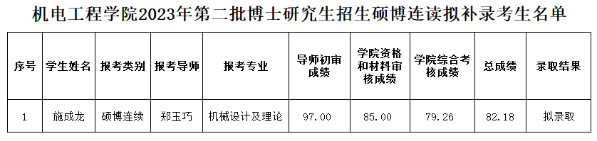 2023年第二批博士研究生招生硕博连读补录名单公示