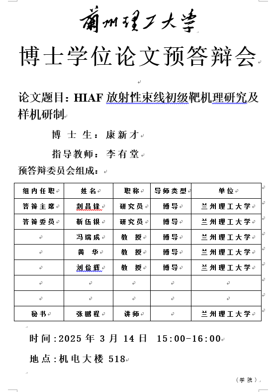 2025年春季学期博士研究生学位论文预答辩会((康新才)