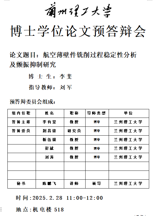 2025年春季学期博士研究生学位论文预答辩会((李斐)