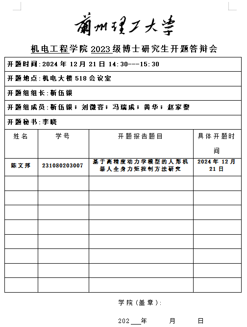 2024年秋季学期博士研究生开题答辩安排(陈文邦)