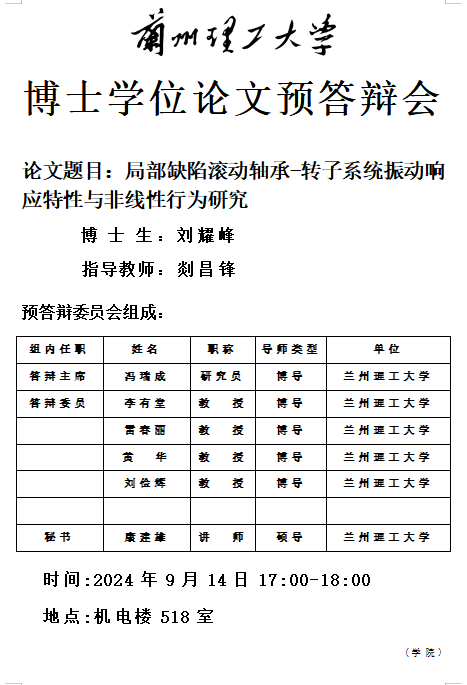 2024年春季学期博士研究生学位论文预答辩会((刘耀峰)