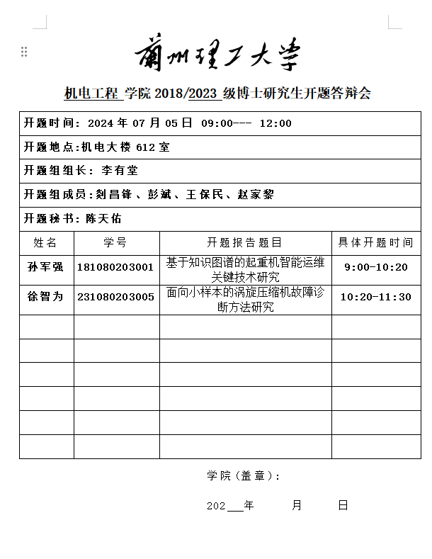 2024年春季学期博士研究生开题答辩安排(孙军强 徐智为)
