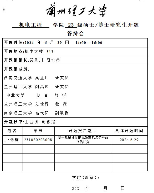 2024年春季学期博士研究生开题答辩安排(卢菊梅)