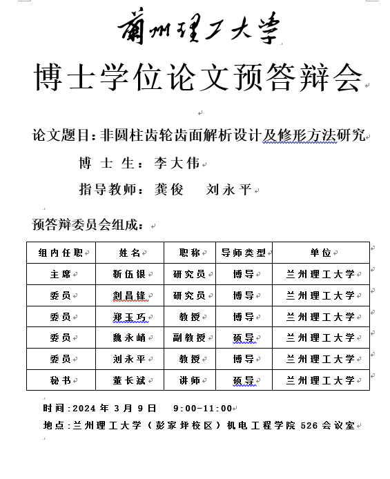 2024年春季学期博士研究生学位论文预答辩会((李大伟)