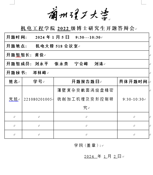 2023年秋季学期博士研究生开题答辩安排(五)