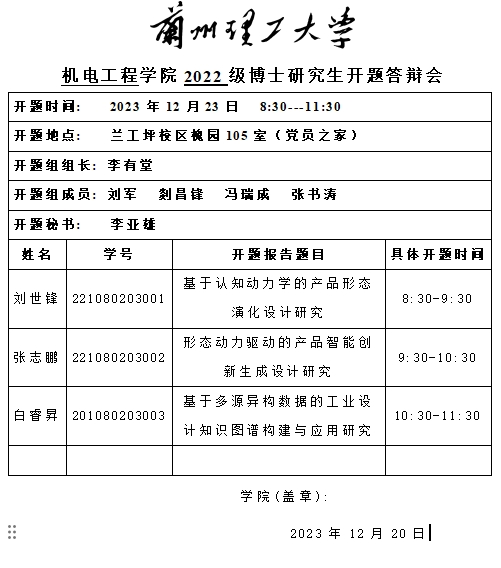 2023年秋季学期博士研究生开题答辩安排(三)