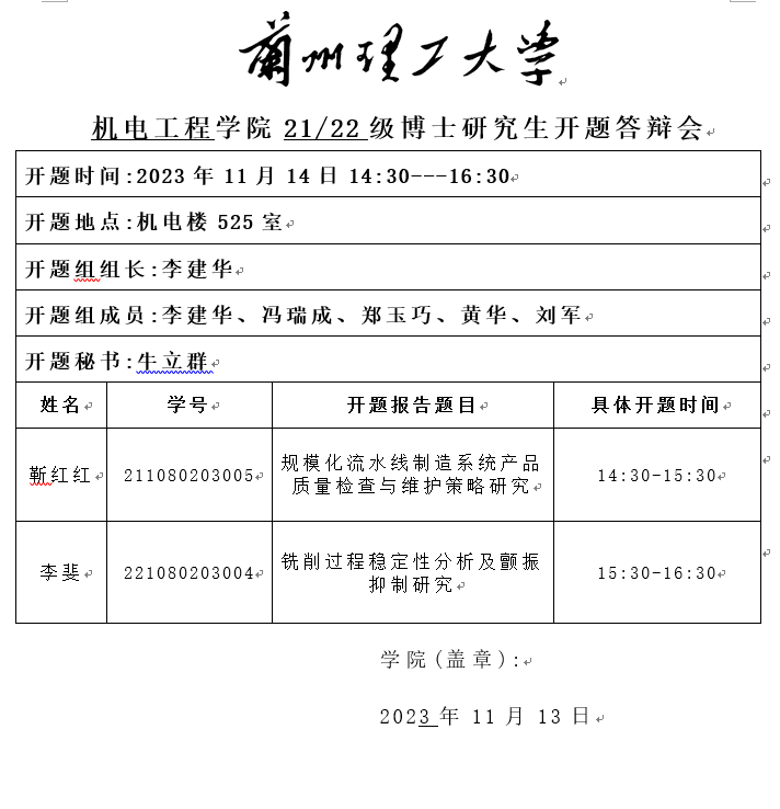 2023年秋季学期博士研究生开题答辩安排(二)