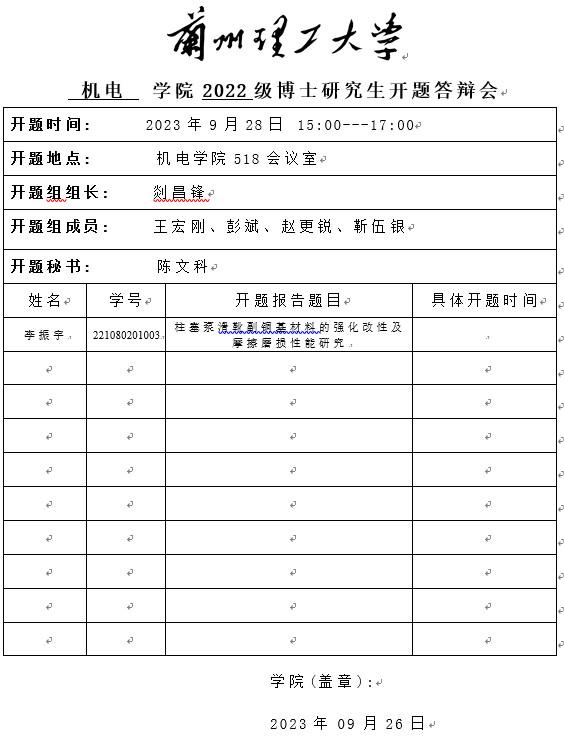 上一篇:2023年秋季学期博士研究生开题答辩安排(二)
