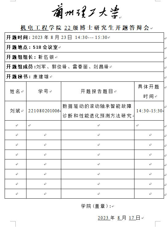 2023年下半年博士研究生开题答辩安排