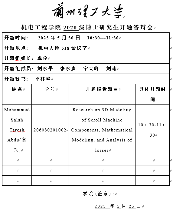 2023年春季学期博士研究生开题答辩安排(二)