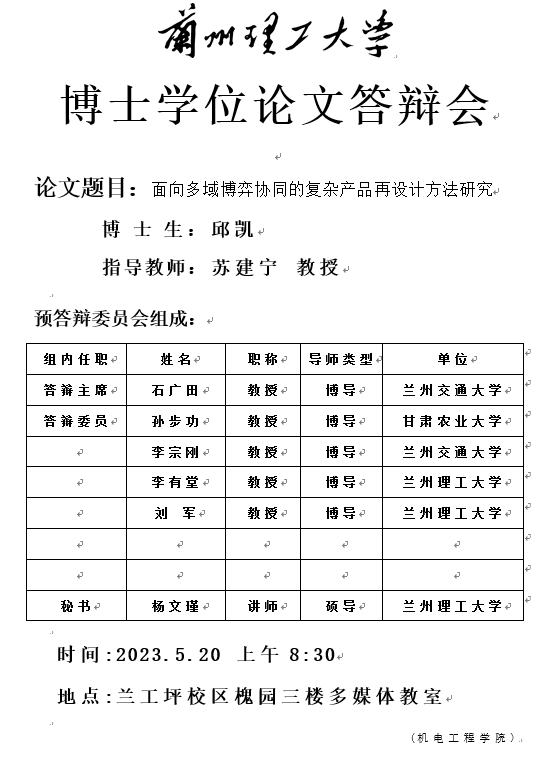2023年春季学期博士学位论文答辩海报