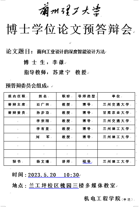 2023年春季学期博士学位论文预答辩海报