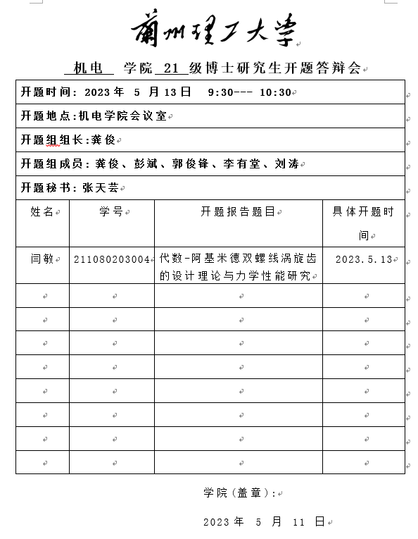 2023年春季学期博士研究生开题答辩安排(一)