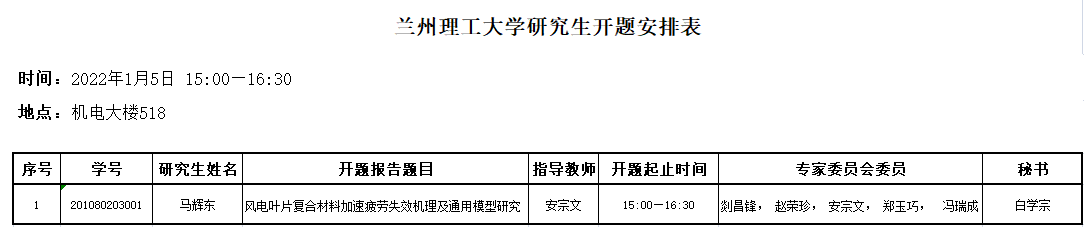 博士研究生开题安排(马辉东)