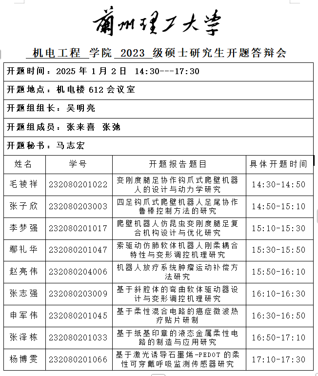 2024年秋季学期硕士研究生开题(十三)