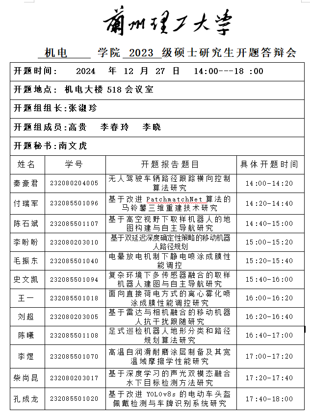 2024年秋季学期硕士研究生开题(十一)