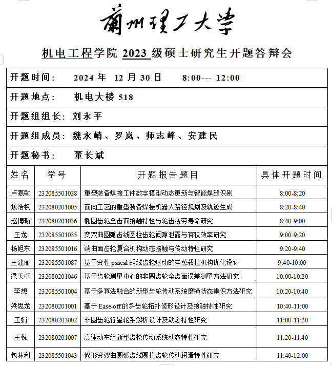 2024年秋季学期硕士研究生开题(八)