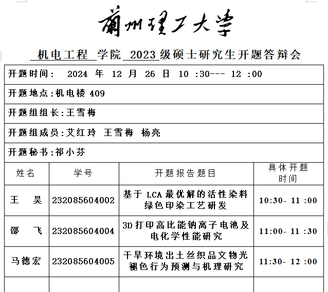 2024年秋季学期硕士研究生开题(七)