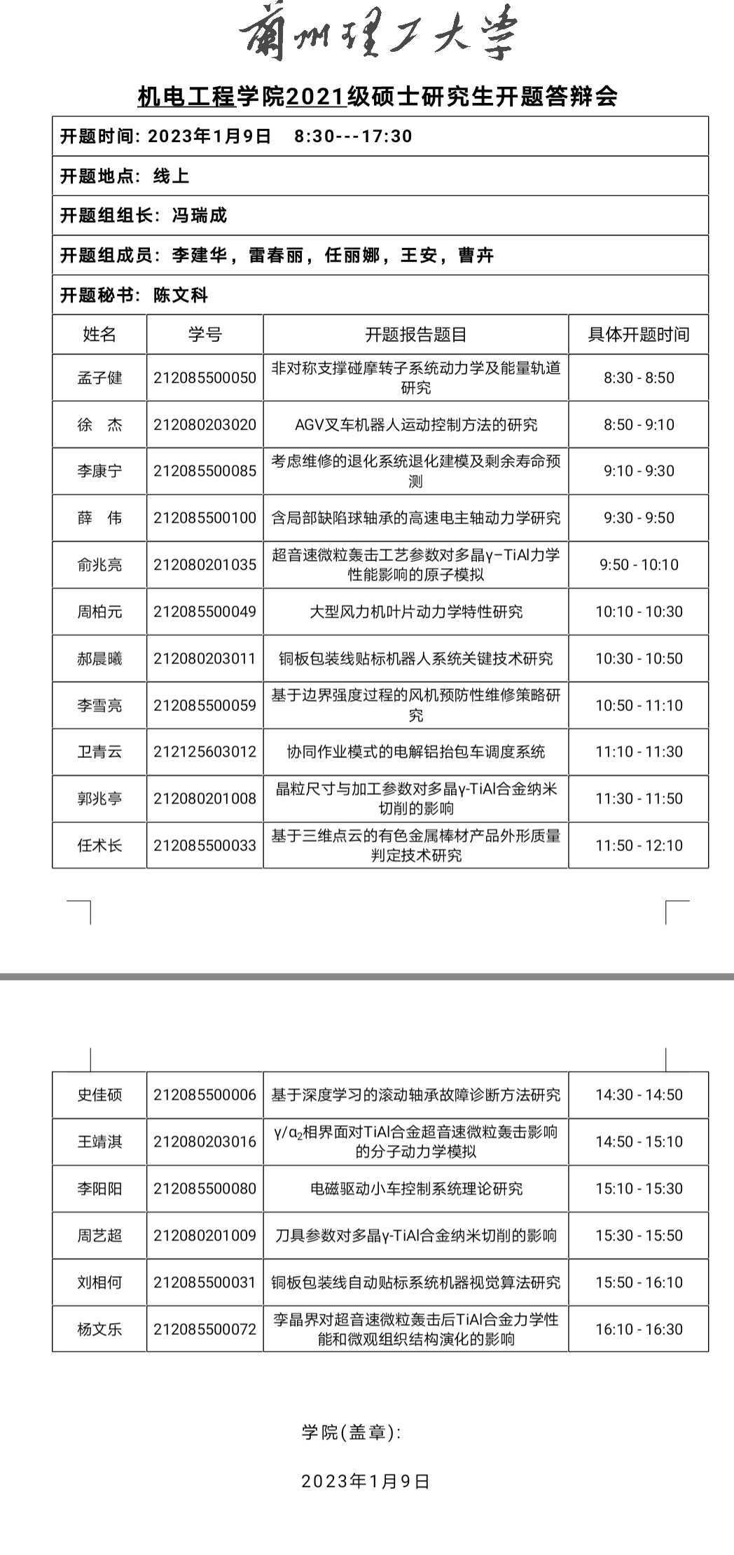 2022年下半年硕士研究生开题(四)