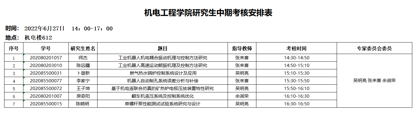 2020级硕士研究生中期考核安排表十五