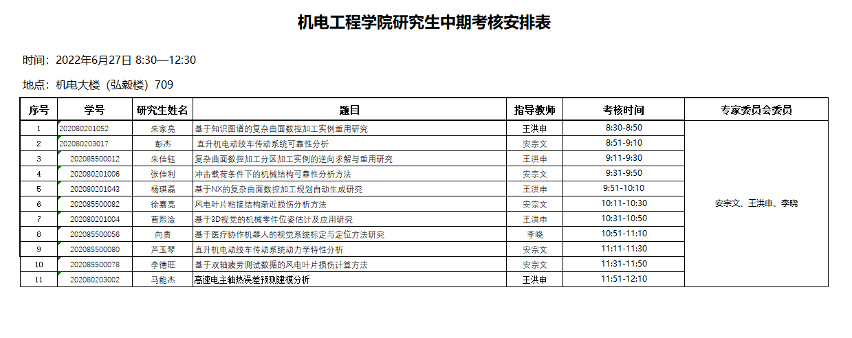 2020级硕士研究生中期考核安排表十四