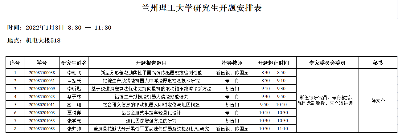 硕士研究生开题安排(李朝飞等)