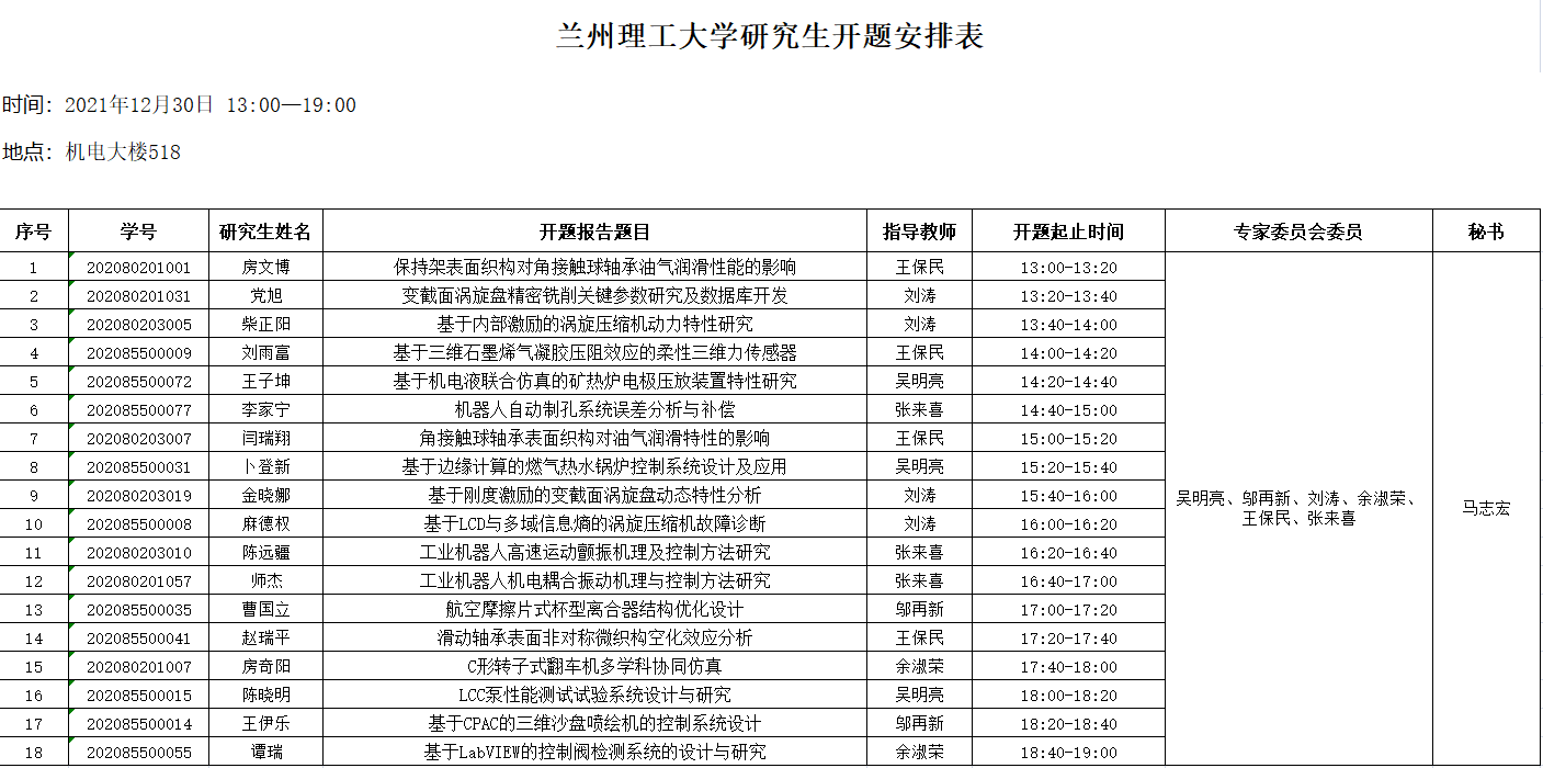 硕士研究生开题安排(房文博等)