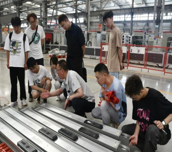 7月19日上午,实践团到达天水长城控制电器有限责任公司。师生参观了电器柜制造生产线,企业负责人就不同工作岗位职能、生产流程、产品适用范围和相关岗位所需专业进行了详细讲解。参观结束后,同学们与企业专家现场交流求教,了解岗位任职条件、行业发展现状等。企业负责人鼓励同学们珍惜公司时光,夯实专业基础,拓宽知识面,以时代需求为目标,为国家和社会贡献青春。