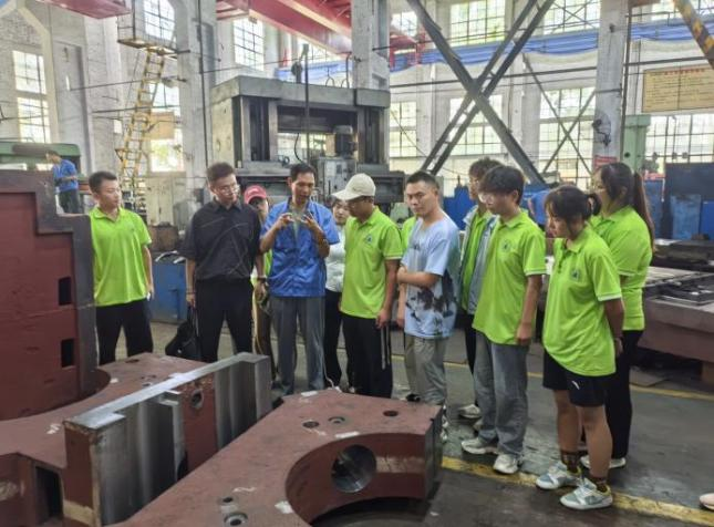 7月17日下午,实践团到访天水星火机床有限责任公司,在公司技术负责人的带领下,全流程参观机床制造的的相关工艺车间。每到一处,企业负责人都会将相关工艺流程、设备设施、岗位工作和车间任务详细讲解给同学们,帮助大家了解厂区工作和生活。参观结束后,双方开展座谈交流,就员工发展、25届校园招聘等方面做了交流。